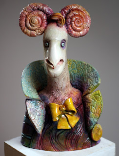 rzeźba ceramiczna, prezentująca popiersie, kobieta, rękodzieło, malowana na zimno, sygnowana ANNAART 2024